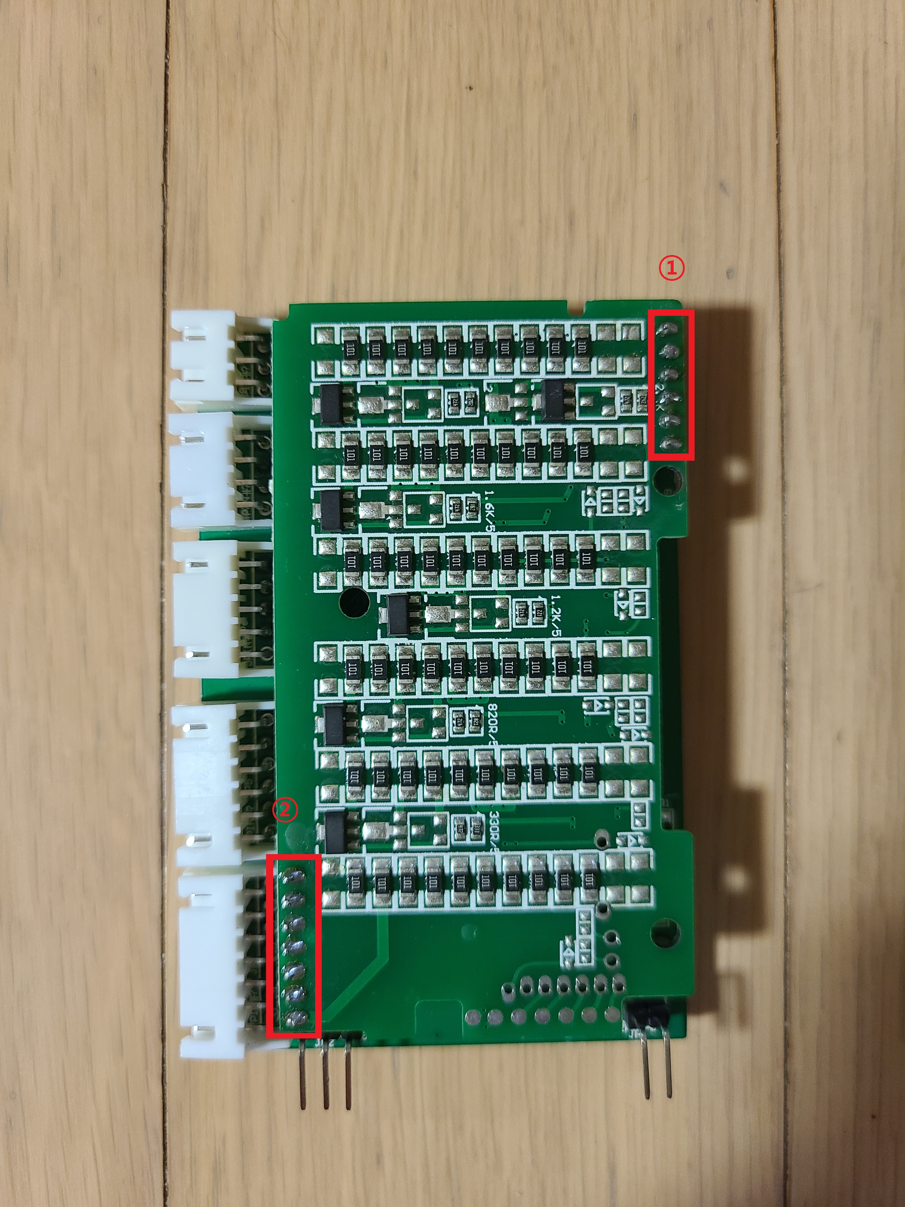 하판에는 2SB772가 6개, 100옴 저항이 6 * 10 개가 있습니다. 이 battery balancer는 최대 6개의 셀을 연결할 수 있는 것으로 보아 각 TR이 하나의 셀을 담당하고 100옴 저항 10개를 병렬로 방전시키면서 밸런스를 맞추는 것으로 짐작됩니다.