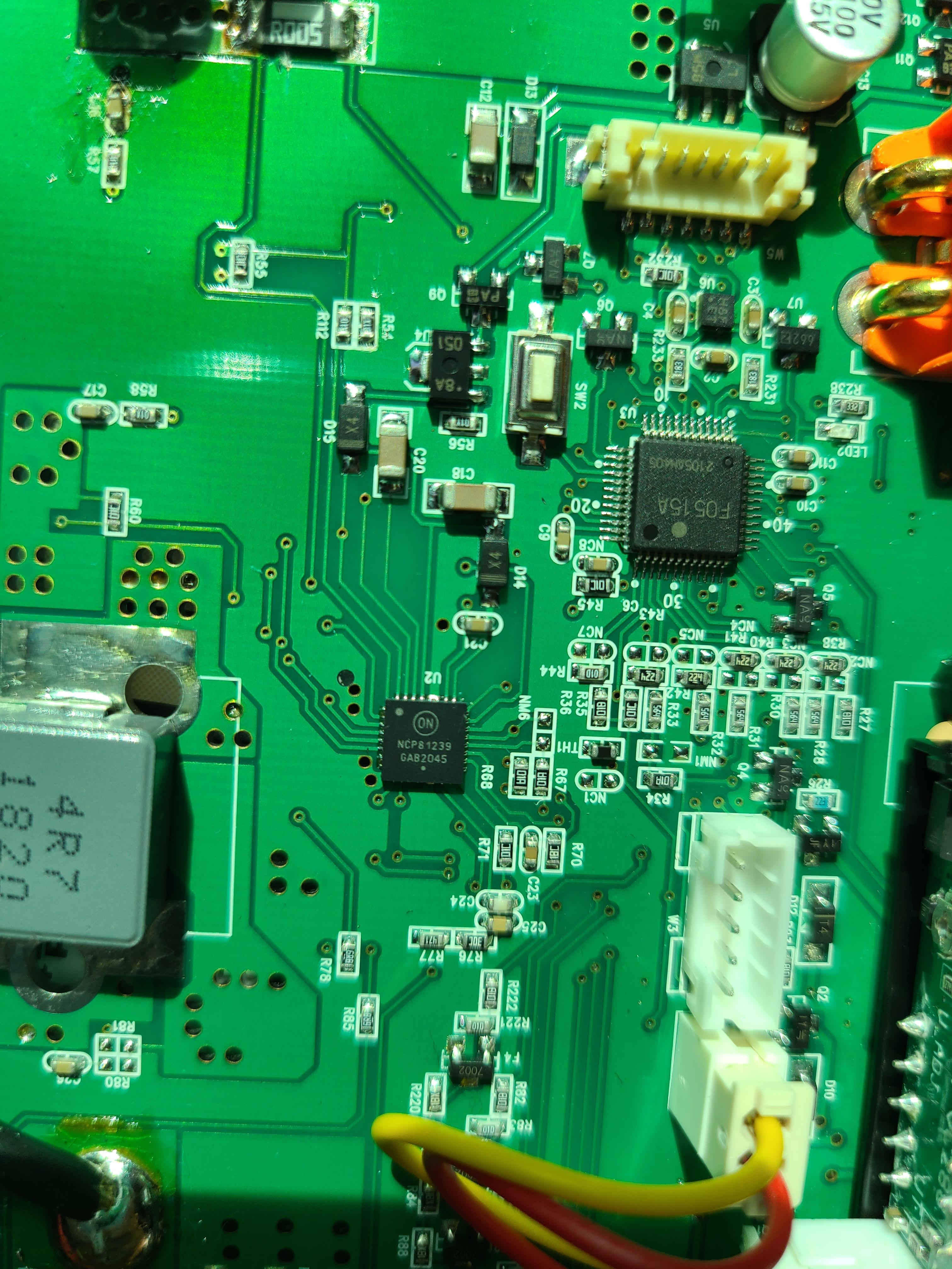 주 제어를 담당하는 MPU로 F0515A를 사용했습니다. 검색해 보니까 UPD78F0115A가 정식 품번이고 RENESAS Technology Corp에서 만든 8비트 마이크로프로세서입니다. 이 MPU는 다뤄 본적이 없지만, 칩 바로 위에 있는 7핀 커넥터가 firmware를 기록하는 일종의 ISP가 아닐까 추측해봅니다.