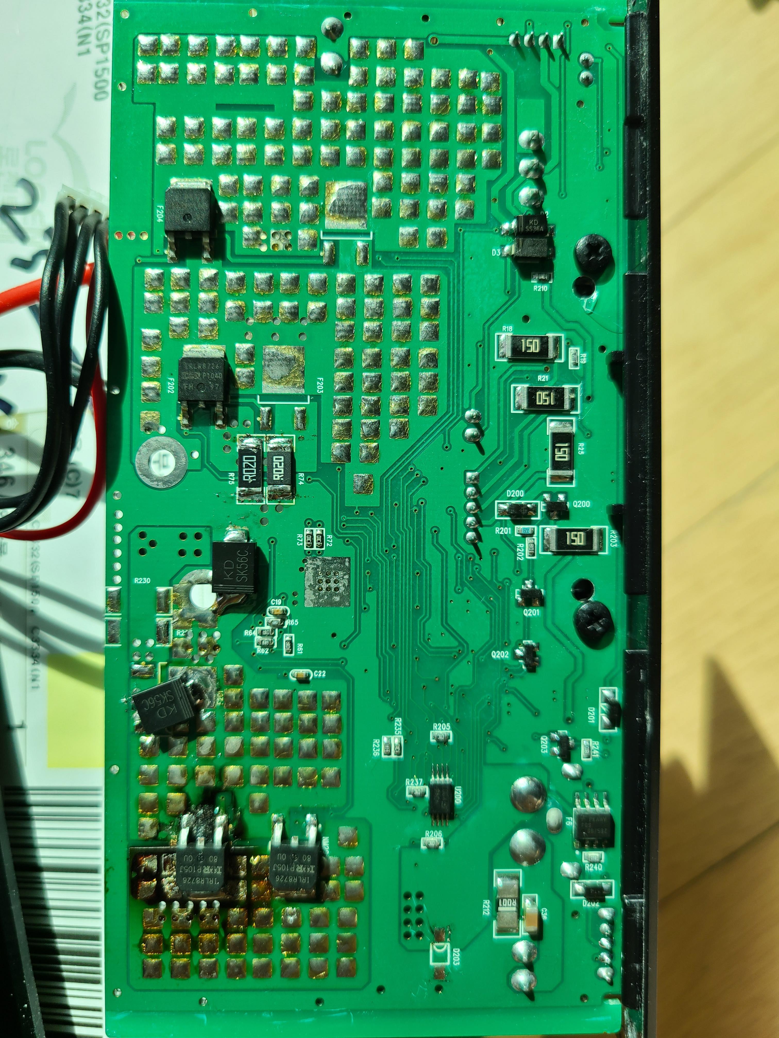 아래쪽 검게 그을린 부분이 눈에 확 들어옵니다. IRLR8726인데 N-Channel MOSFET입니다. IRLR8726이 총 4개인데, 검게 그을린 아래쪽에 있는 두 개는 출력을 담당하고, 위에 있는 두 개는 입력을 담당하는 것 같습니다.