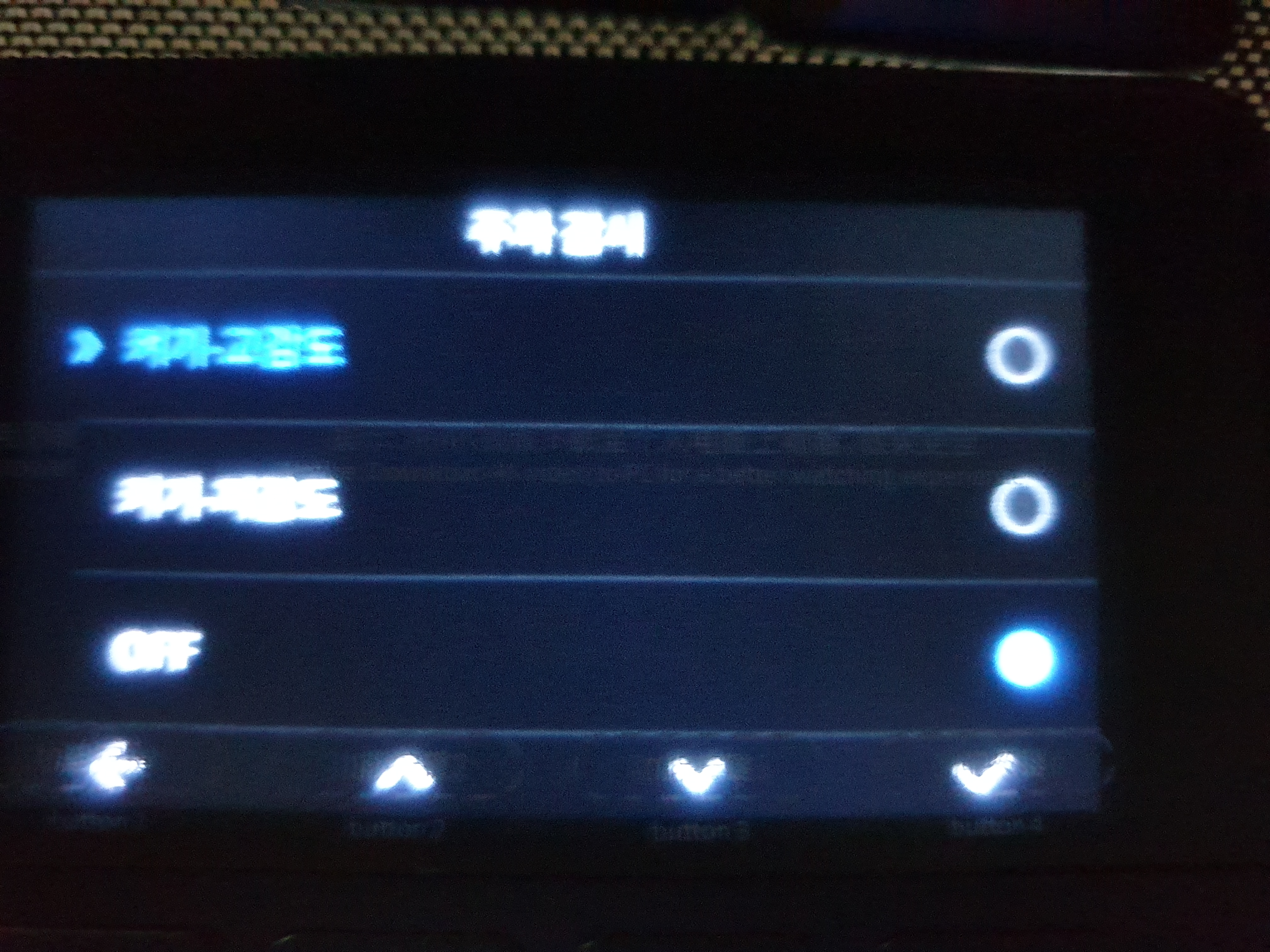 ID핀에 5V를 연결한 다음에 다시 A800의 비디오 설정 메뉴로 진입하여 주차 감시를 선택하니까, 예상했던대로 아래의 사진처럼 주차 감시 모드 설정이 가능해졌습니다.