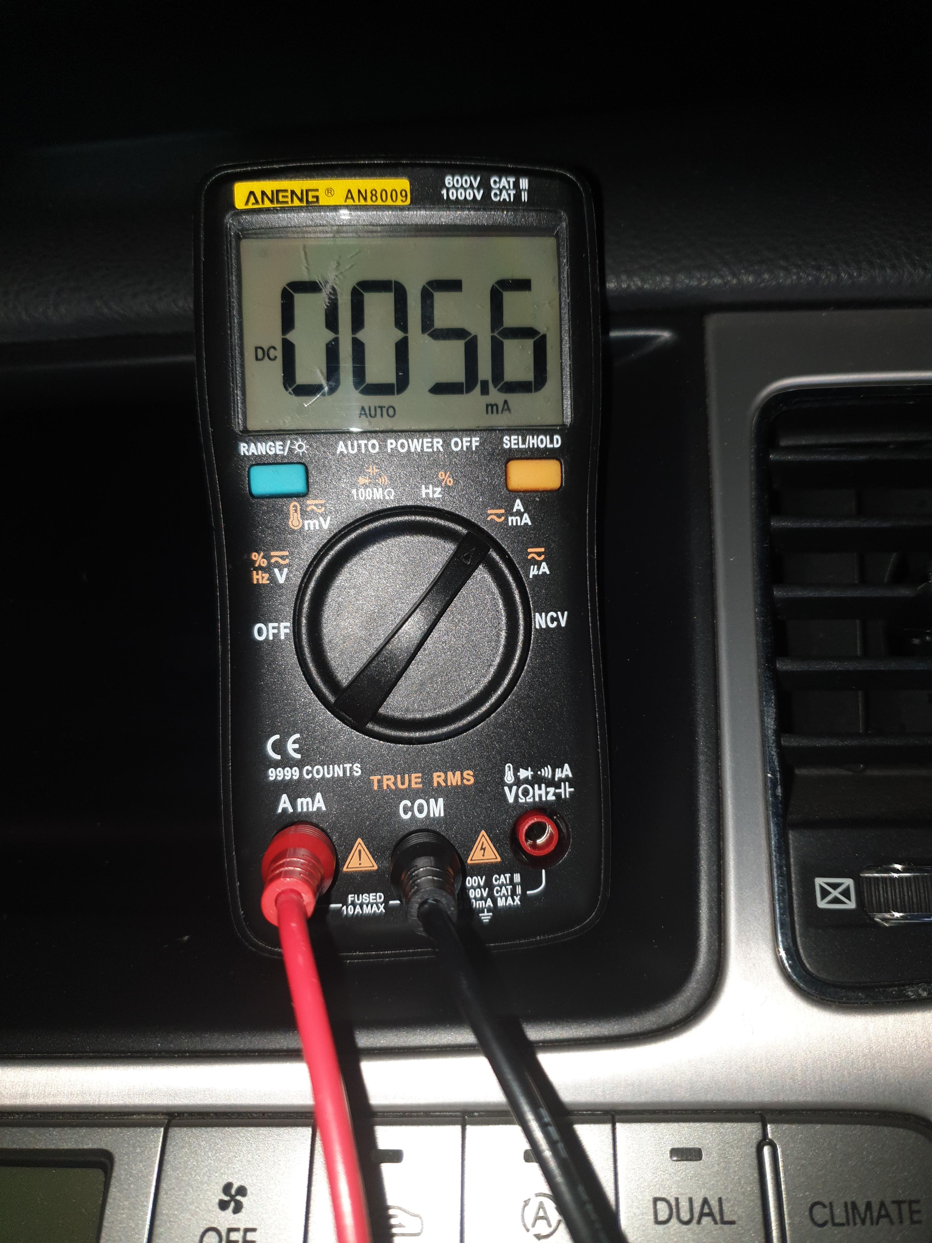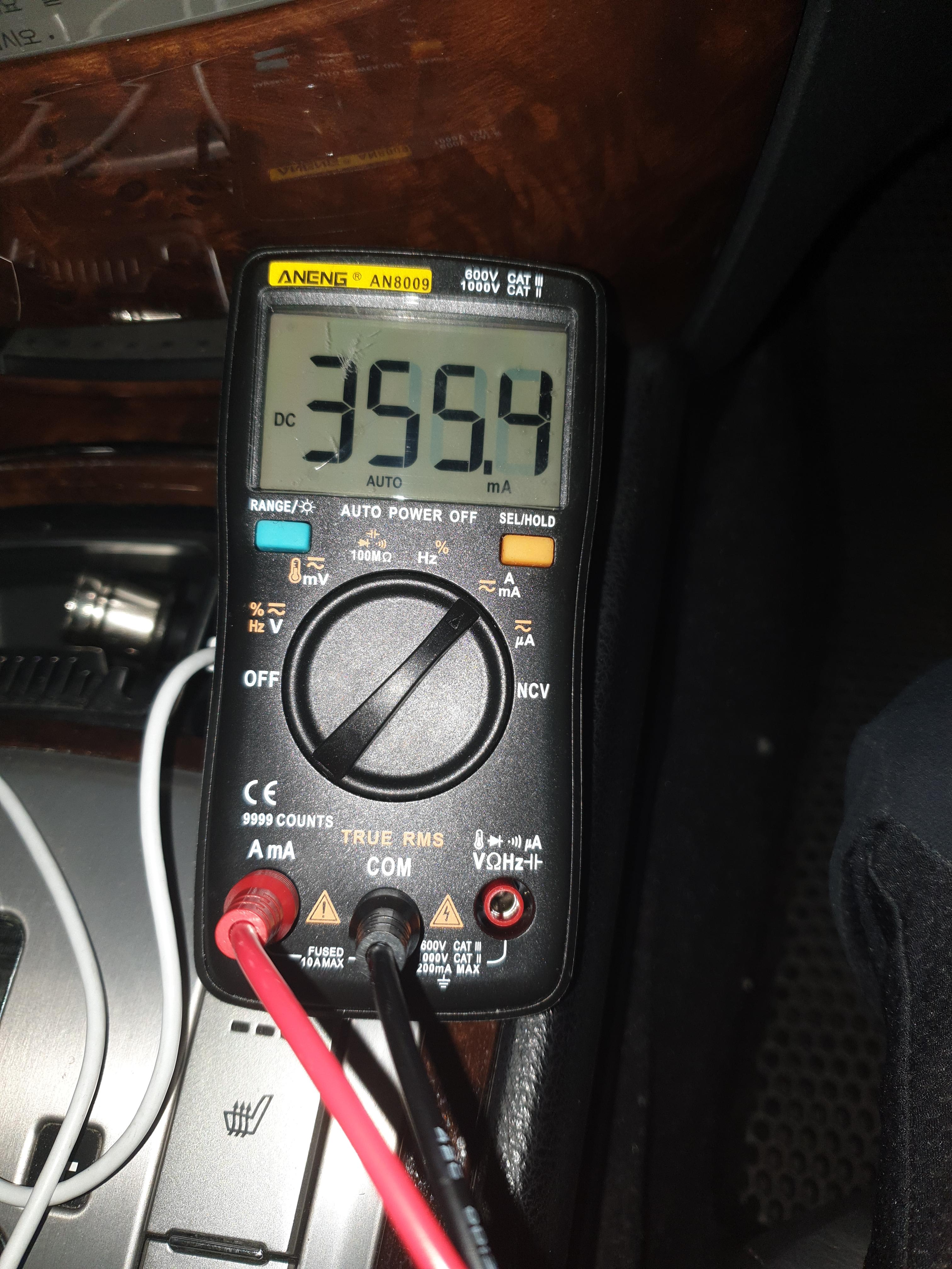 주차 감시 모드시 소비 전력입니다. 약 5mA ~ 6mA 정도 소비하는 듯합니다.
